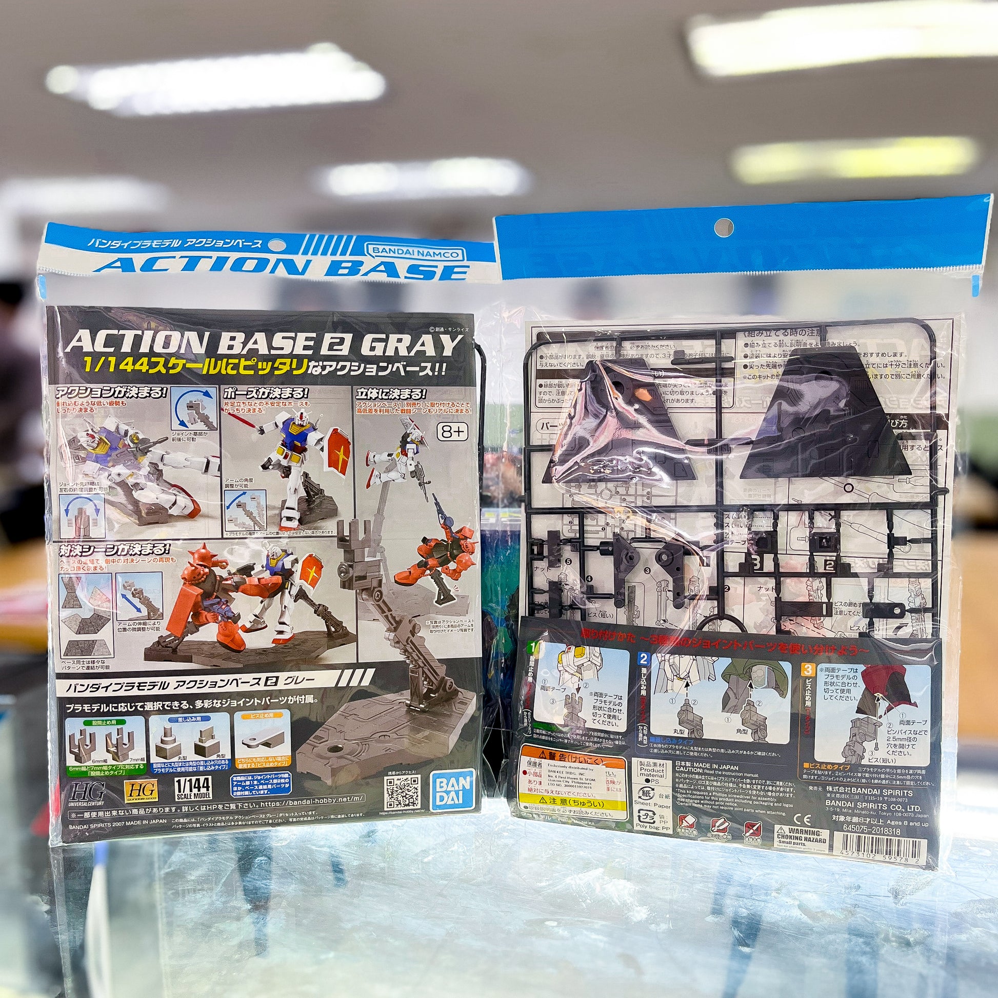 Display your small-scale Gundam model kits in style with BANDAI's Action Base 2 GRAY! Designed for Bandai's HGUC, FG, HG Gundam 00, HG Gundam Seed, 1/144-scale models, and SD Gundam series, this display base features cool mechanical detailing and adjustable height and angle options. Assemble with ease, no cement or paint required! (It's lit!)
