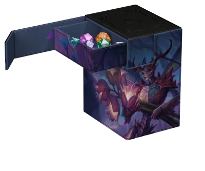 Ultimate Guard's Flip'n'Tray 133+ Xenoskin is a premium MTG deck box for all Magic formats (Commander/EDH, Modern, Standard, etc.) featuring two independently accessible trays — one for 133 double-sleeved cards in Ultimate Guard sleeves* and one for dice and accessories. Printed with officially licensed artwork from Magic: The Gathering's "Lorwyn Eclipsed" set, the Flip'n'Tray features durable Xenoskin material, a microfiber inner lining, and strong magnetic closures that guarantee exceptional card protection. Designed to combine with other Ultimate Guard products, this deck box can hold a Boulder 100+ when the card tray is removed.